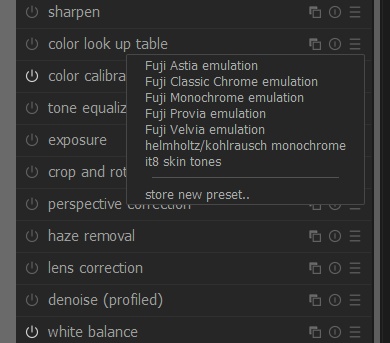Finally, you have Darktable Styles (dtStyles) which can result be downloaded. There is a huge repository for Fujifilm styles, covering dozens of film stock variants and X-Trans III sensor styles. It’s a great resource to get your image looking “Fuji”, and styles can be adjusted easily, as they are usually base curves with often other adjustments which are added to your history stack for tweaking.