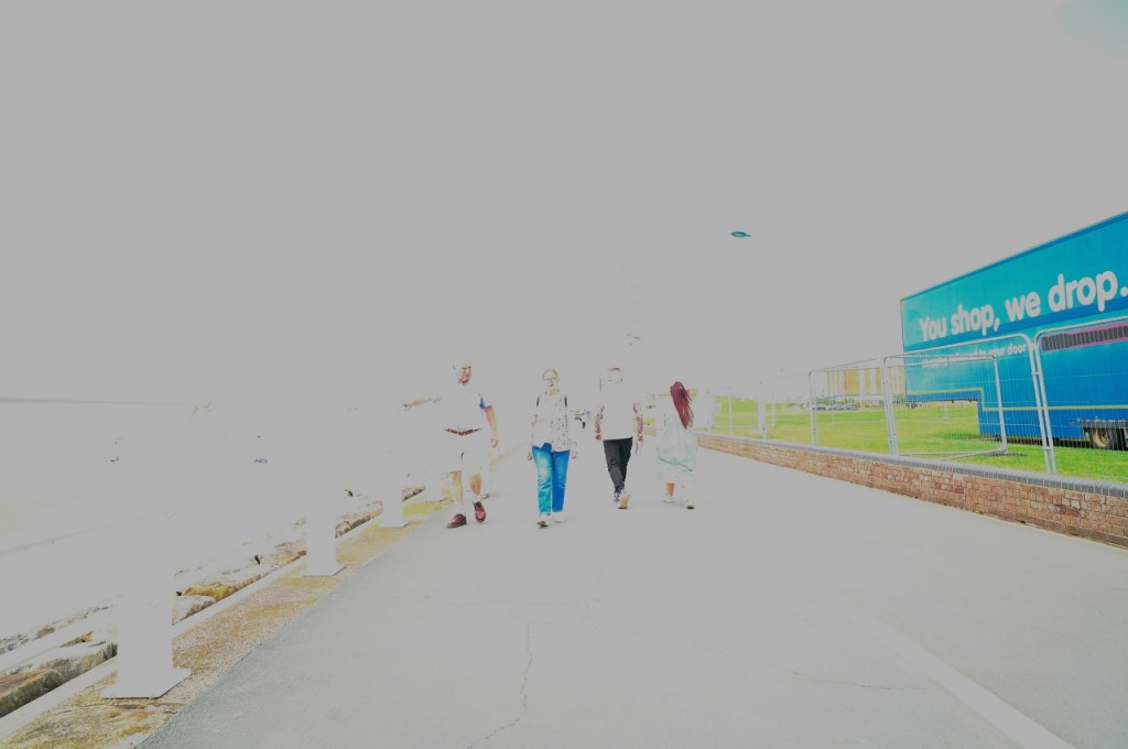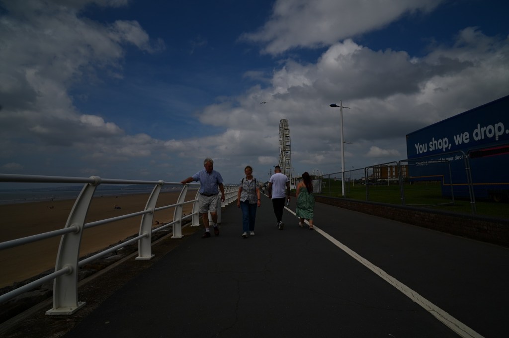 As you can see, at five stops under exposed, the image is almost black! The corrected image (5) is now very noisy with detail lost and colour shifts in the shadows. The small umbrella on the beach to the right is now very mushy, the peoples faces and the woman’s face is very grainy. The mans black pocket (walking away from us) is now unrecognisable.